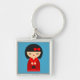 Red Kokeshi Japanska dockor Fyrkantig Silverfärgad Nyckelring