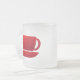 Red Kopp och Saucer som kan ha kaffe eller te eller någon annan dryck inuti.