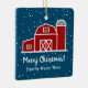 Red ladagehus i snö anpassningsbar jul Ceramic Ornament. Personligen är en ornament för jordbruket i teckning. Cute vintersouvenir Helgdag. Gör din egen julafton dekoration och träd-dekoration. Inkluderar guld glitter-sträng för upphängning. Lägg till eget foto eller egen text på baksidan om du vill. Anpassadets bakgrund färg. Unik presentidé för par, nygifta par, vän, familj, medarbetare, medarbetare osv.