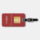 Rött faux-läder skrivs ut som bakgrund. Anpassa och lägg till logotyp, namn och kontaktuppgifter för ditt företag. Vit text.