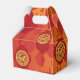 Red and orange silhouettes of various Chinese Lanterns as background + Golden vertical Chinese wishes + Happy New Year in English + small golden paper-cut of a horse on a red lanterns. You can delete this small image if you want to use the design for all Chinese New Years. Design on party gable favor box. Matching greeting card, horizontal holiday postcard, sticker and more. Perfect for Chinese New Year of the Horse 2026.