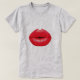 En modern popkonsdesign av stora röda läppstift-läppar. Ut ur folkmassan i trendiget och T-shirt. Den här designen inspireras av punktering och punktering av popkonsgrafik. En coola och ett mycket stort trendig vid läppar mode påstående.
