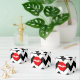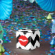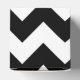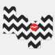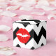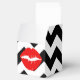 Ljusröd läppar mot svart och vit schevron eller zigzag mönster.
