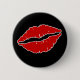 Knappen är perfekt att dekorera väskan med eller till bära på Alla hjärtans dag! Det illustrerar ljusröd läppar i svart bakgrund.