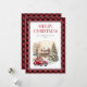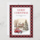 Vattenfärgat lastbil God jul-kort med vintern och ett rött lastbil i en röd buffel som plaid ram.