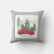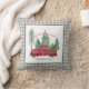 "Red Lastbil Grått Gingham Buffalo Check Farmhouse, Dekorativ kudde Home Decor." Grått och mjukt grått-vingham- och från handmålat rand, lumberjack pläterade för en juldekoration till gårdshuset, gör att den retroröda gården lastbil absolut dyker upp! Tillagt inslag är en skog av träd och typografiktexten "Merry & Bright". Watercolor-verk av en internationellt känd licensierad artist, Audrey Jeanne Roberts, copyright.