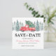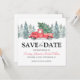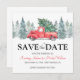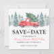 Rustiskt vinterbröllop sparar datumkorten med en enkel vit bakgrund, vattenfärgshristmas spruce träd, en vintage röd lastbil, en julafton träd och en traditionell besparing av datummallen som är lätt att anpassa.