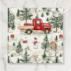 En söt, klassisk vinterdesign med vintagen Red lastbil, träd, snö och Snögubbe!