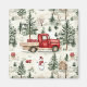 En söt, klassisk vinterdesign med vintagen Red lastbil, träd, snö och Snögubbe!