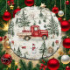 En söt, klassisk vinterdesign med vintagen Red lastbil, träd, snö och Snögubbe!