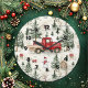 En söt, klassisk vinterdesign med vintagen Red lastbil, träd, snö och Snögubbe!