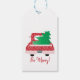 Red Lastbil med Julgran Presentetikett
