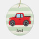Red Lastbil; Pastel Grönt Rand Julgransprydnad Keramik