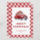 Anpassningsbar Red Gingham har fyllt julkort med ett klassiskt rött lastbil. Anpassa enkelt dessa snöfärgade röda julkort från lastbil med din familj namn.