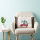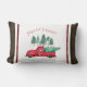 "Red Lastbil Rustic Merry Bright Play Gnome Farm Wooden, Dekorativ kudde Home Decor." Rustic mörk-lingets bakgrund med julen Plade gräns kombineras med en söt vintage-retroröd gård lastbil, en skog av träd och typograftexten "Merry & Bright". Watercolor-verk av en internationellt känd licensierad artist, Audrey Jeanne Roberts, copyright.