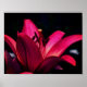 Lättfärdigt röd blomma nära med kvardröjande regndroppar. Blomsterfotografi av Susan.