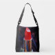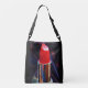 Denna Crossbody Tote Bag gör ett fet påstående med ZoeSPEAK:s design, ett foto av ljust rödläppstift i ett rör av party-färgad mot mörken party ljus. Stora flickor och små flickor kärlek röda läppstift.