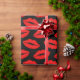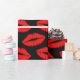 Red Lipstick Kiss Mönster Black Wrapping Papper Presentpapper