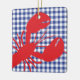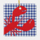 Red Lobster Blå Vit Gingham PLATS År Julgransprydnad Keramik