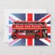 Det här anpassade Spara-the-Date-kortet har en välkänd vintage red Routemaster buss, en sann symbol för London och England med Union Jack i bakgrunden.