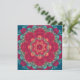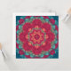 Denna fantastiska, mycket detaljerade mandala skapades när den inspirerades av blommor från lotus. Utformningen har ett vackert, djupt rött och orange färg avfärdas av blått och teal.