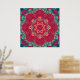 Snygg, andlig mandala, som är inspirerad av blommor, i rött och orange med teal teal färgad löv. Det sätt som färg används på ge ger en tredimensionell bild av den här inspirerande teckningen. Lotus-blomman har ett speciellt ställe i olika religioner, tro och mytologi och har olika innebörd i de olika religionerna, till exempel skapelsen och den fortsatta processaa av födsel och återfödsel, förmögenhet, rening och trohet. Lotus-blomman symboliserar också en tidlös gudomlig skönhet.