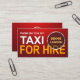 Ett ljusrött omslag förstärks av en överdimensionerad skylt "TAXI FOR HIRE". Över överst på kortet visar en vinjett på kontaktuppgifterna med din prestigefyllda namn som sitter i en faux silver-cirkel mot högerna.