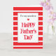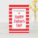 Mycket rött på det här moderna Fars dag-kortet för barnson. Den har en strimlad röd bakgrund på framsidan tillsammans med ett litet rött hjärta. Insidan av detta moderna kort för Fars dag i Lycklig läser ett budskap från Fars dag som du lätt kan anpassa om du vill. Baksidan har den randiga designen tillsammans med det röda hjärtat med ett ställe för att du ska kunna anpassa dig till året. Det skulle göra honom till en underbar nyckelfråga.
