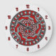 Denna koncentriska cirkelformning innehåller lagrar av geometriskt mönster som liknar redskap som man kan hitta i moderna eller till och med främmande maskiner, i röda nyanser och grått.