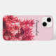 Den häpnadsväckande röda löven på rosans bakgrund.