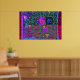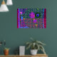 Röd, grönt, teal, svart och akvarium dominerar denna komplexa maze mönster med oregelbundna former av magenta, kalk och himlar som är spridda i geometrisk bakgrund, alla inneslutna i en röd och fuchsisk kvadratgräns. Färg är fantastisk! Design by D. Flouton 2012.