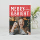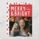 Red Merry & Bright Bold Typography-julfoto Julkort
