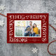 This festive holiday card features the words "merry everything and a happy always" in a frame around a single photo on the front with space for a second photo on the back. It also has space for your name as well as the year.