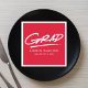 Moderna studenten-blöjor med "Grad" som visas med vit handskriven text med röd bakgrund. Anpassa de röda studenten-blöjorna genom att lägga till student namn och studenten. Personlig studenten-blöjor är perfekt för både högskoleexamen och party.