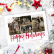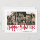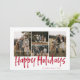 Red Modern Lettering Four Photo Lycklig Helgdag Card har fyra foton framtill och ett annat foto på baksidan med plats för ditt längre meddelande.