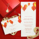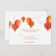 Elegant kinesiska hänglyktor i röda nyanser och orangar + röda vrister för chic + vit bakgrund illustrerad på inbjudan till OSA i personligt bröllp. Snygg och exotisk stationär i bröllop som dina bröllop gäster kommer att njuta av! Hela provtexten kan vara helt i personlig med din egen formulering. Du kan även redigera färg, storlekar och typsnitt för texten. (Du hittar de bröllop-essentialer och -favörer som passar i den här butiken, Möhippa himlen. Kontakta ujean4791@gmail.com för anpassningsbar och/eller samordning av bröllop-kontorsmaterial.)