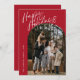 Red Modern Script Glad helg Arch 2 Photo Helgdag Card har en roligt och ett modernt skript på ett utfallsfoto i fullt, tillsammans med ett andra foto på baksidan och rummet för ditt meddelande.