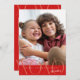 Red Modern XOXO Photo Valentine Day Card med rosa och röda X och O och ett skript namnteckning namn. Baksidan har ett andra foto med plats för ditt meddelande.