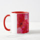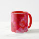 En pulserande blandning av rött och rosa nyanser skapar en dynamisk och energisk abstrakt mönster. Den virvelande och marmorerade effekten antyder rörelse och fluiditet över sammansättningen.