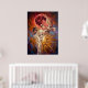 This surreal spiritual art poster features a powerful symbolic composition with a red moon, a graceful crane, and mystical elements that represent balance, wisdom, and inner awakening.