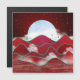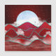 Abstraktens landskapskonstruktion i olika röda nyanser med månsken, backe, träd, moln och fåglar.
