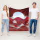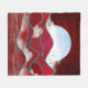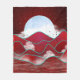 Abstraktens landskapskonstruktion i olika röda nyanser med månsken, backe, träd, moln och fåglar.