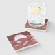 Abstraktens landskapskonstruktion i olika röda nyanser med månsken, backe, träd, moln och fåglar.