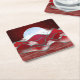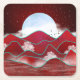 Abstraktens landskapskonstruktion i olika röda nyanser med månsken, backe, träd, moln och fåglar.