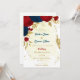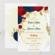 Red & navy blåa blommor guld löv bröllop inbjudningar
