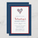 Red Navy Blommigt Heart Valentine Dinner Party Inbjudningar