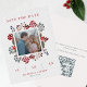 Red & Navy Winter Berries Photo & QR Code Bröllop spara datum