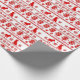 Silhouette images of Boston Terrier dogs are the feature in this repeated pattern on this fun Christmas gift wrapping paper. Along with the dog images are paw prints, snowflakes, and the script text "Merry Christmas". Everything is bright Holiday red on a white background.