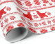 Silhouette images of English Cocker Spaniel dogs are the feature in this repeated pattern on this fun Christmas gift wrapping paper. Along with the dog images are pawprints, snowflakes, and the script text "Merry Christmas". Everything is on bright Holiday red on a white background.