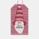 Den här juldesignen har en nordisk märkre med ett långt vitt skägg som du kan anpassa med ett namn. Det finns en röd och vit snowflake faire isle-bakgrund mönster bakom gnomen.